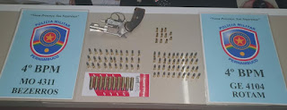 Foi através de um disque denuncia feito para a equipe rotam da cidade de Caruaru que através de informações conseguiram localizar um menor na cidade de Bezerros que estava efetuando disparos de arma de fogo em via pública a equipe Rotam de Caruaru juntamento com os policiais de Bezerros conseguiram localizar um revolver e 90 munições em uma residencia onde o menor de 16 anos e o maior de 47 anos foram conduzidos ate a delegacia para as medidas cabiveis.